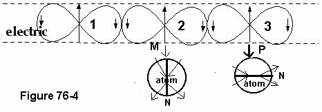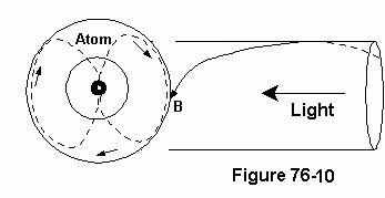 It is quite simple how light affects the atomic and/or molecular formations as may be demonstrated by Figure 76-10. Light as a rotational entity causes things to either spin, or increase or decrease some type of movement in these formations resulting into that typical rotational format for electricity.