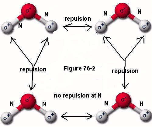 This much must seem obvious how when an atom of H distances itself from the atom of O, as per Figure 76-2, N, it has not reversed itself, it is still holding on with a like direction of conductive movement.