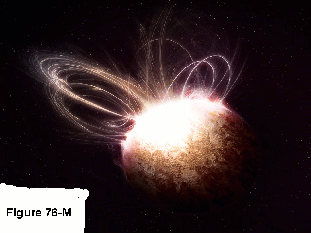 Then take a look at Figure 76-M, how well these magnetic lines come to maintain their circular format. However powerful a flare may be shot out from any star, the 3M for its magnetic nature is well able to hold on to it, and that of course after its nature of.