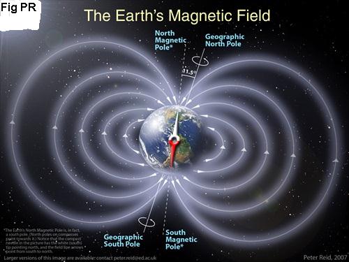 Below is an illustration from Peter Reid. (Fig PR) His comment below reads; "The earths north magnetic pole is in fact a south pole. North pole on compasses points towards it."