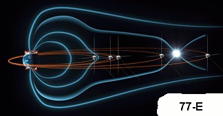 This is what is lacking in illustration 77-D, where the frontal lines do not even reach the moon, and the backside is missing as well. And when the moon has moved by a quarter in its orbit, how then will we show the magnetic fabric of our earth?