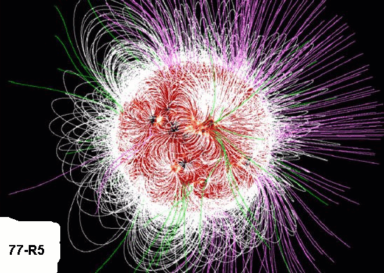 I realize that the sun is a very large body, and that it can contain a number of segments within that star each having their magnetic coordinate, wherefore the magnetic lines as they appear on the surface are so radically complicated.
