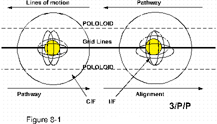 In addition to the foregoing, a means of establishing a scale for motion may be set which I called, "Pololoid". This also is by a three-point reference mode set in between the two power-lines as the single movement of power, and the nucleus as the base.