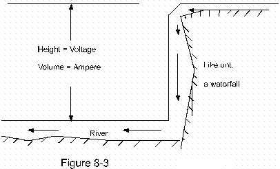 When therefore we install a dam in that river, we establish; a 'potential difference' (Figure 8-3), which is in fact a "potential" of the flow, and can be utilized to any means for power that we may require.
