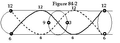 This is also true for two waves that seem to be intertwined illustrated by figure 84-2. The solid line wave is at point 12 with the broken line wave at point 6 in the circle of their movements.