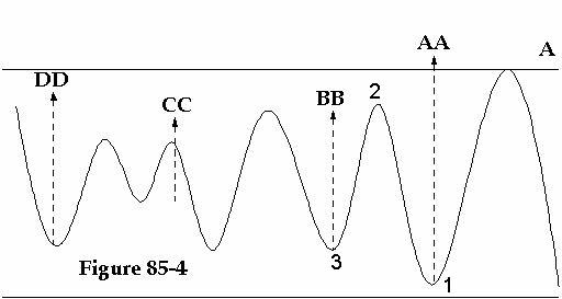 By the illustration Figure 85-4 the wavelet from A to AA must proceed by a certain circumference, but from AA to BB that circumference must be smaller. And how is that wavelet fixed in its rotation at not only such a high velocity, but at an even greater rate of revolutions per unit in time, to all of a sudden take on a different mode of travel?