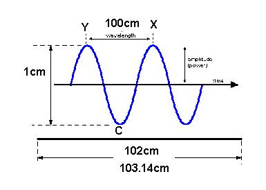 But rather than measuring - how shall we suppose to find that velocity mathematically? That too is quite simple, Y to X, as the crest-to-crest is the nominal length of the wave, while Y to C to X is the actual and/or full length of the wave.
