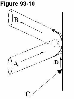 In the question as to how and why light and other such waves refract; the best way to illustrate that is by a phenomenon called reflection drawn up by Figure 93-10. If waves came as lines like unto C in the illustration, they would not reflect but glance off into direction D.