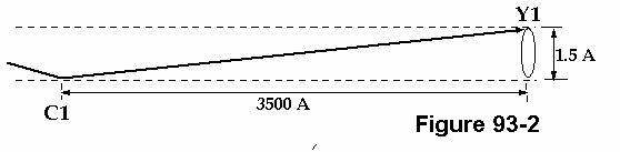 Illustration Figure 93-2, is more like it - since we know for a fact that the diameter of a light-wave is somewhere around 1.5 Angstroms. And we also know that red light has a full length of 7000A, the half of which is 3500A. C1 therefore corresponds to C, and Y1 corresponds to Y.