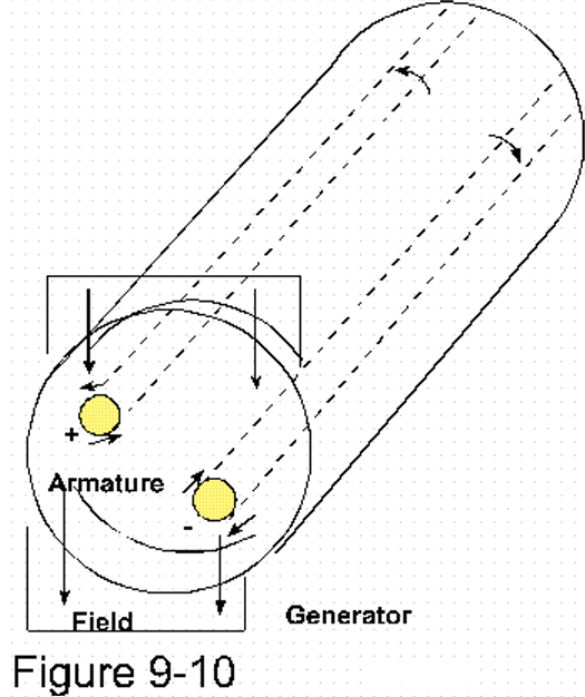 As the armature of a generator turns through a magnetic field, it sets up a movement in the wires embedded therein. This induced motion is of a single angular as well as linear direction.