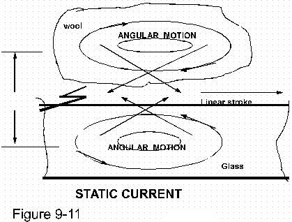Reference figure 9-11 The principle by which static electricity is formed is the same by which any electrical current is formed. The generator produces two angular movements in opposite direction of one another by what is essentially a linear stroke.