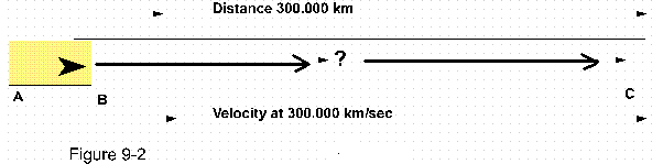 It now is taught that the electrons as they flow to make for electricity, do not travel at the speed of light but only at one/tenth of that speed. But that is an interesting notion, for how then do they arrive at their destination ten times as fast as the speed at which they are able to travel (Figure 9-2)?