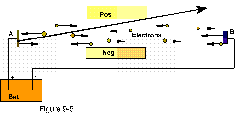 And for another thing to shame us, Electrons, as one sided coins (negative only), on the presumption that they speed back and forth between the anode (Figure 9-5) (A), and the cathode (B) at some 100 million km/sec. What stops them, and what accelerates them to the tune of 30 million times per second? What law of nature may account for that?