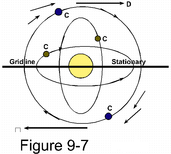 Reference figure 9-9, Electricity is a specific formation of movement by which it presents itself, and there are two means by which to obtain it. One is as from center on outward, the other, from outside to center, for again to obtain electricity is nothing more than to obtain a potential opposition within the general motion of nature.