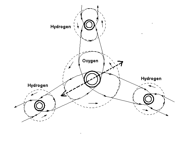 Figure 3 illustrates the molecule of water as I visualize its coordinate. Is then the atom of oxygen in water single or dual? For how in air being dual does it come to be single at other times? And by 3 in one it is poisonous by virtue of its now new coordinate that is harmful to humans. One hydrogen atom now connects with an outgoing movement while the second by its ingoing movement.