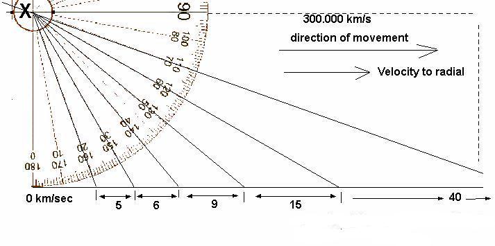 Each different length then travels with its own relative velocity – since it can do no different - as defined earlier. A straight line is darkness to us, like at night with no sun-light the magnetic lines of mother earth receives no impulses, no angular’s.