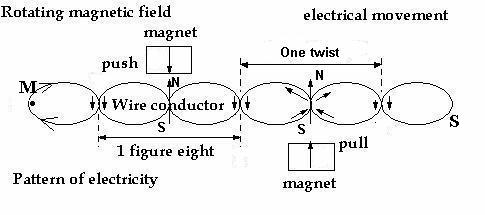 Nor can we say that its movement is in one direction as we erroneously do with ampere since any linear movement upon that string of force is always in two directions, and these at all times rotate at the speed that we apply upon it.