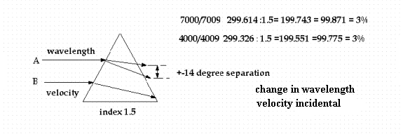When therefore we do the same thing for the shorter 4000a wavelength, as the figures above show, it also comes to the same 3% in reduction. What difference therefore is there in the varied velocities whereby the individual waves should disperse from one another?