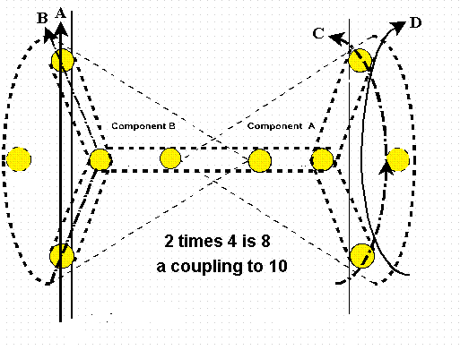 It does not as such rearrange the atoms but fastens a coordinate upon them that for its unique ability produces curvature illustrated by figure 12 C, and D. Basically it amounts to 4 atoms (or groups of atoms) in dual measure that link to one another by 2 additional atoms, or greater number thereof.