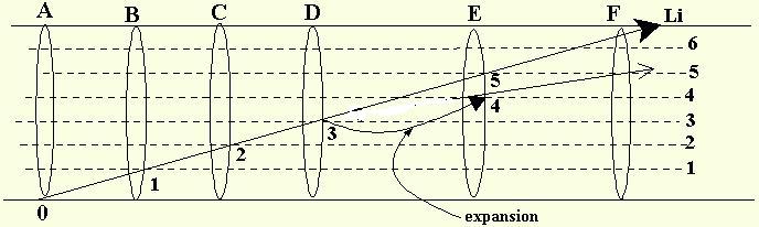 As the light proceeds from point “0” to “Li” over atoms “A” through “D” at equal spacing it contacts these at point levels 1, 2, and 3. Then comes the warmer air where the atomic spacing is greater and here the wave red shifts. Our question then is “how” and “why” it does so?