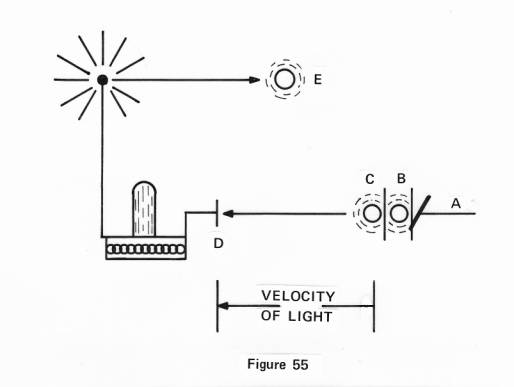 If electron B, has thus assumed these vibrations of the light it must hand these over to electron C, and then this electron must speed away from that point at the speed of light in order to deliver this part of the picture many miles away within that fraction of time.