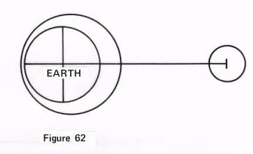 If therefore the moon pulled stronger at the waters near the moon, and less at the waters on the far side, and the earth is pulled with equal force on both these sides, there must be difference to be sure or I am losing all sense of rhyme and reason, together with the great majority of all people everywhere, if not every one of us. If the moon pulled by gravity at all, the Figure 62 should be the correct way the waters always rise. I said provided it were gravity.