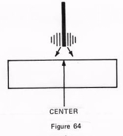 As shown in Figure 64, mark the exact center of the magnetic bar from both sides so there is a mark at the exact center only, and now try to get the other magnet to point to your true magnetic north. You can suspend one if you wish for better observation, and as you try this, note how at various distances or vibrations of your movement one magnet will move back and forth in the figure-eight pattern.